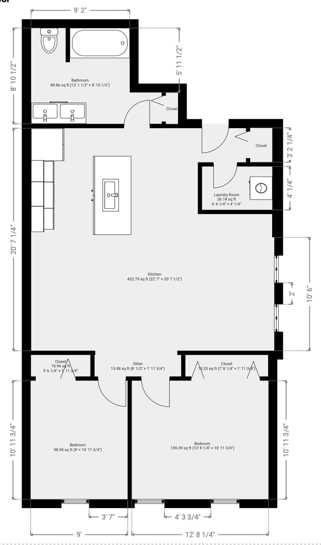 Bedroom #2: 9.3ft X 11.6ft